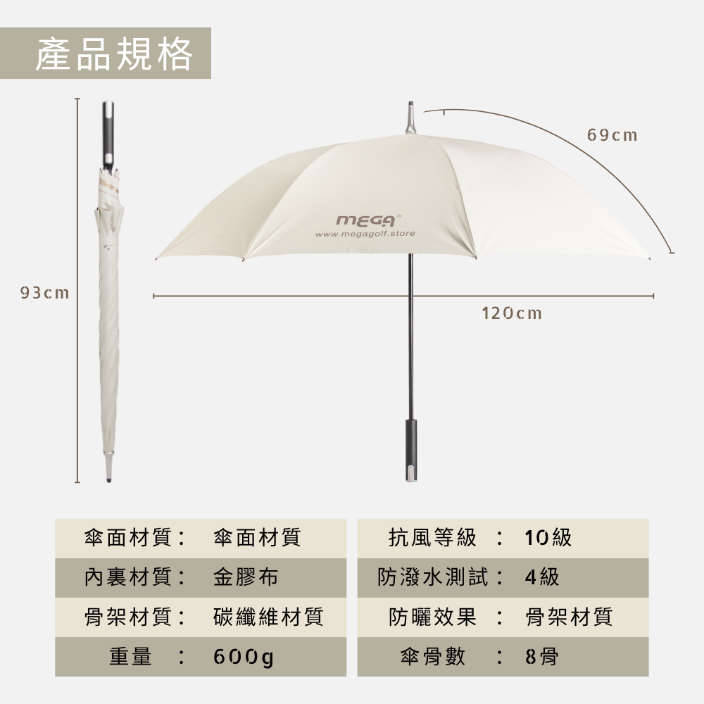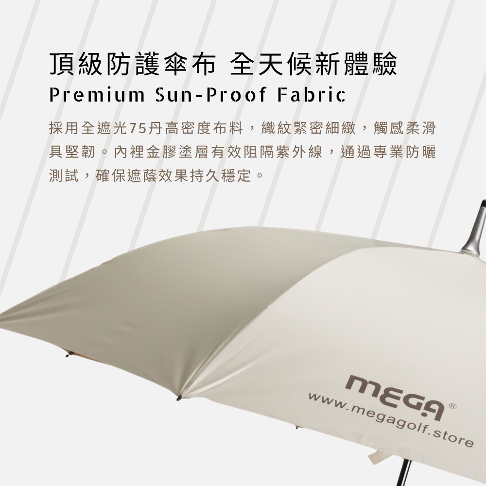 「MEGA金光閃傘,撐起你的財富人生。金色耀眼,不只遮陽,更撐起財富與榮耀。」