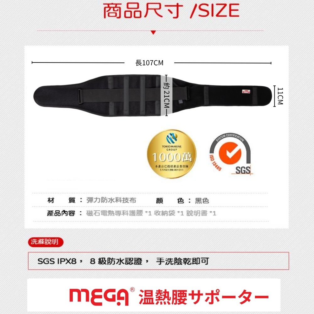 【MEGA】USB無線加熱 磁石專科熱敷護腰 HT-W001